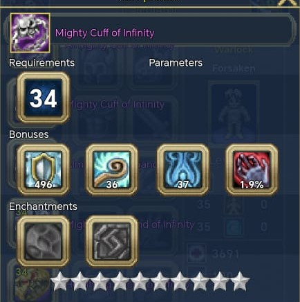 Если с этой экипировкой вы сможете достичь 400+ энергии, 50+ сопротивления и 10 тыс. здоровья, это тоже неплохо. Эта сборка была создана для работы с баффом «Топ-10» на арене, который позволял мне достигать 600 маны едва ли во время активности.