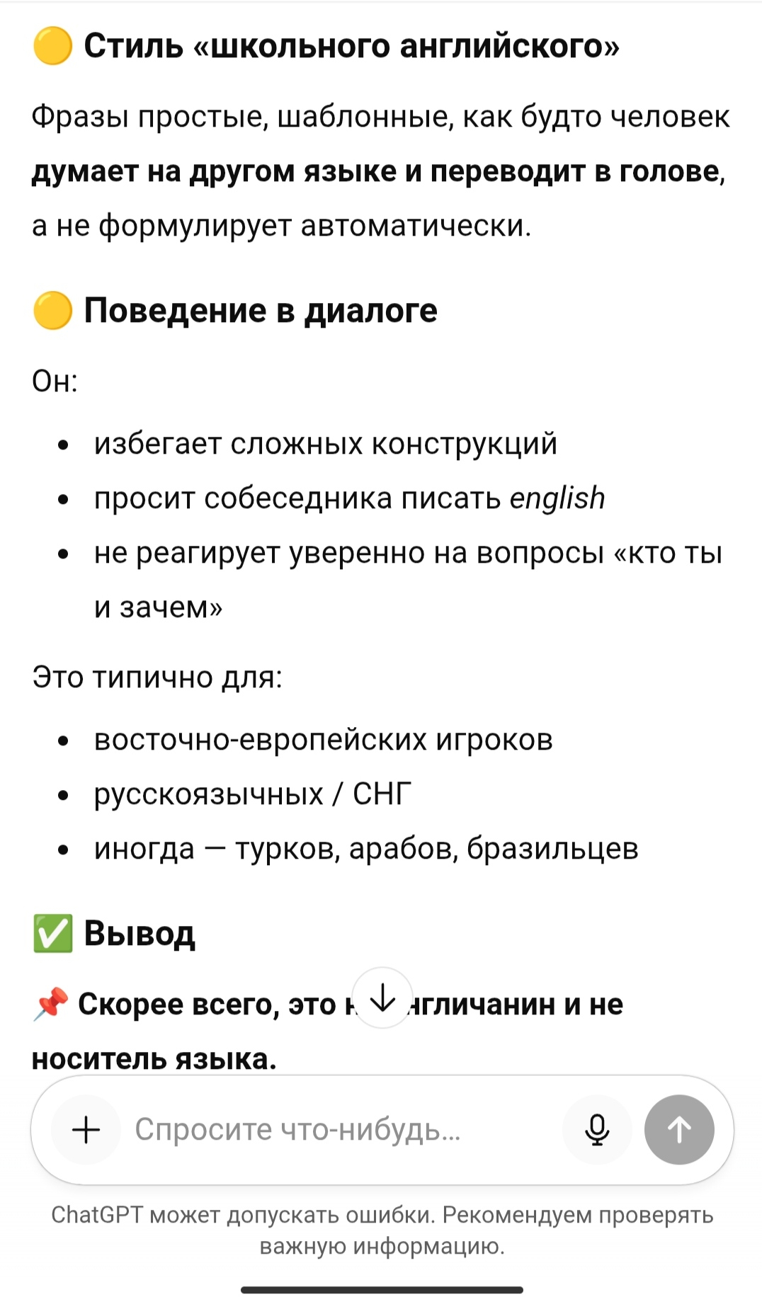 Вряд-ли. На самом деле я чата жопа ти спросил только потому что чел мне не поверит, так я сам вижу по составлению предложений, что это 100% русскоговорящий человек пишет на английском языке. Китайсы вообще по другому говорят на англ, так как у них в совершенно другом порядке составляется предложение.